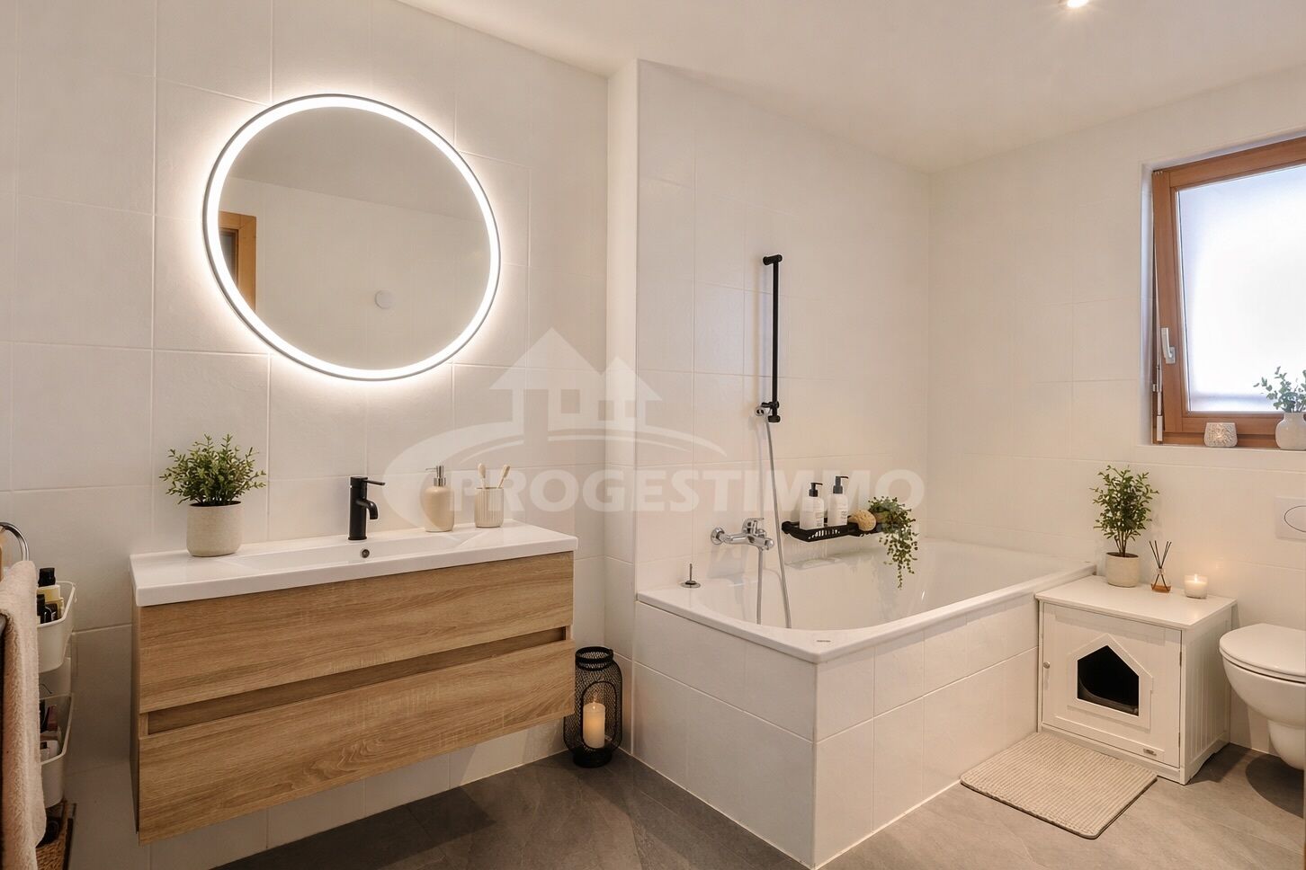 - Salle de bains avec baignoire, WC et lavabo