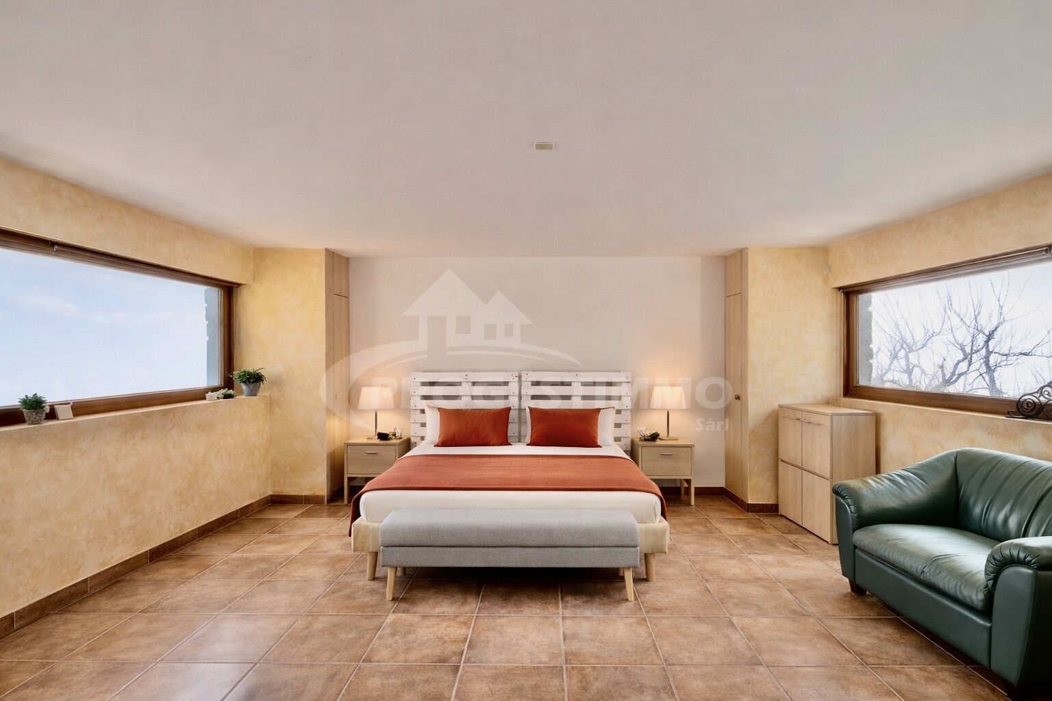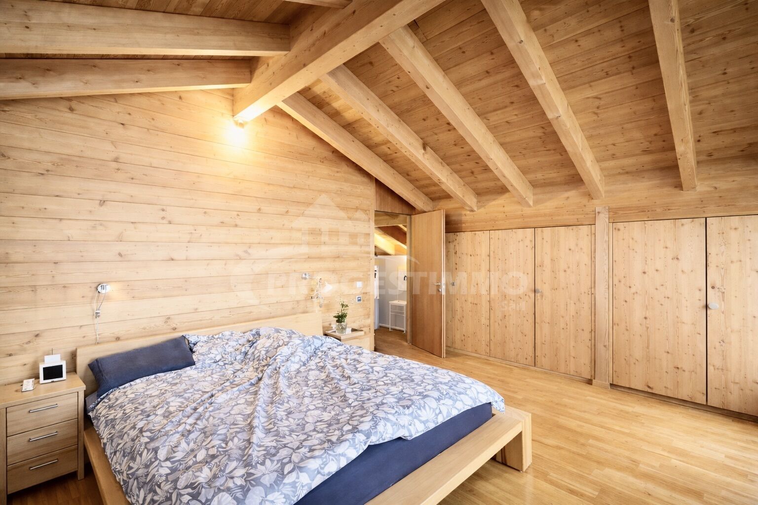 - Une chambre avec armoire murale en mélèze