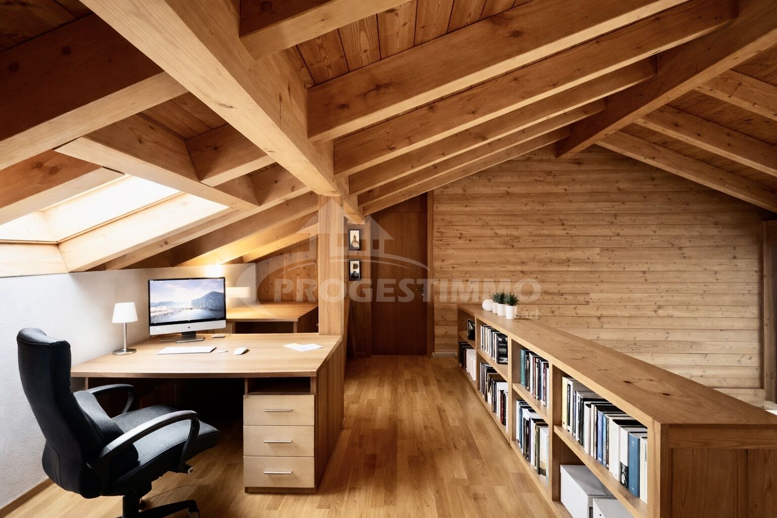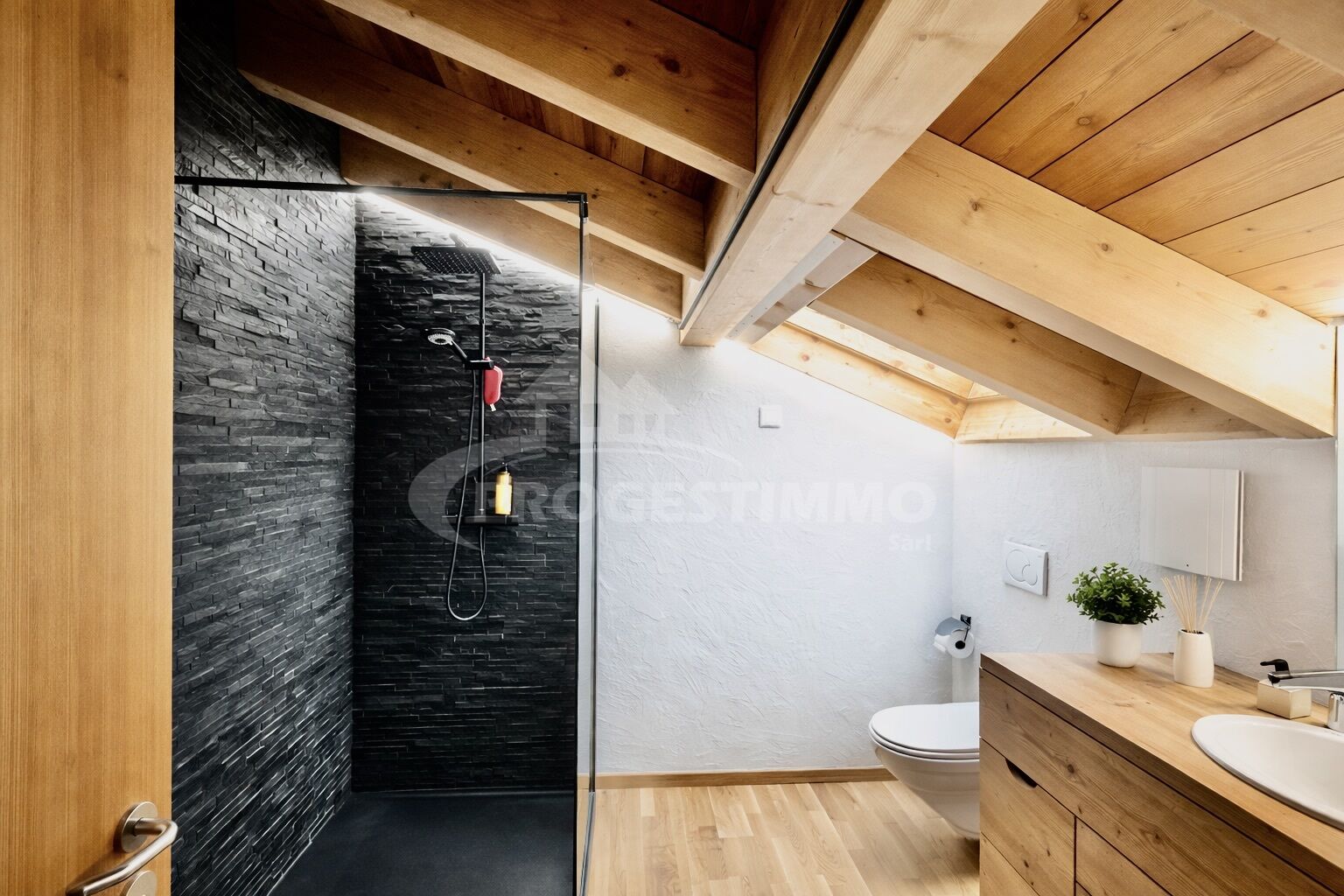 - Une salle d'eau équipée de WC, douche à l'italienne, lavabo et Velux