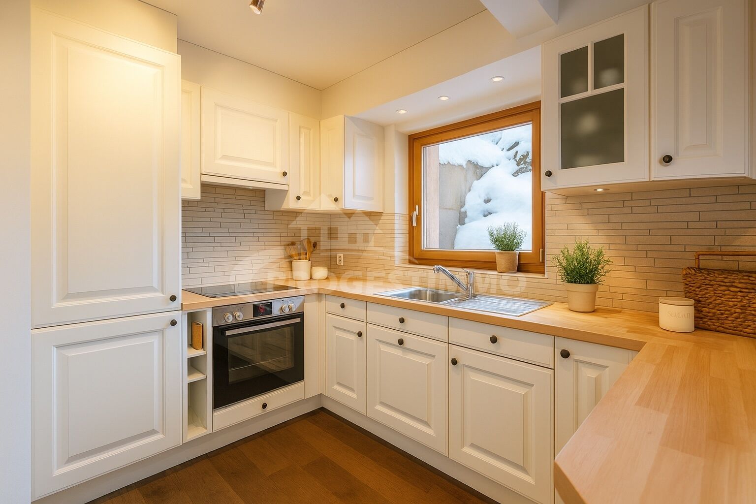 - Séjour lumineux avec poêle à bois, ouvert sur la cuisine rénovée