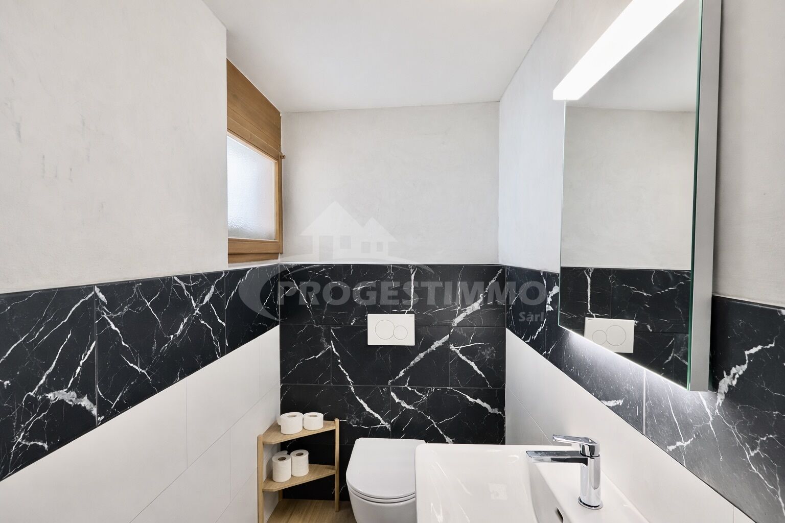 - Un WC visiteur avec lavabo, WC et fenêtre