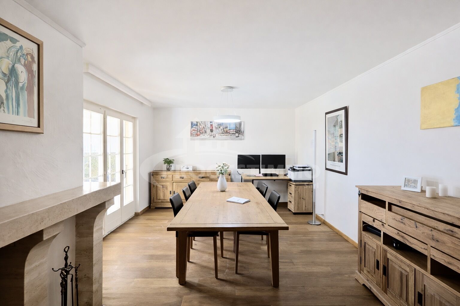 - Une salle à manger spacieuse avec cheminée